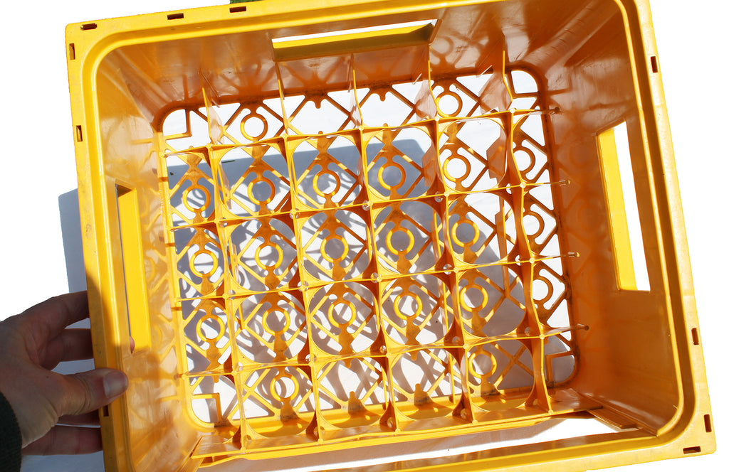 Caisse casier / distributeur à bouteilles vintage Pepsi Cola en plastique jaune.