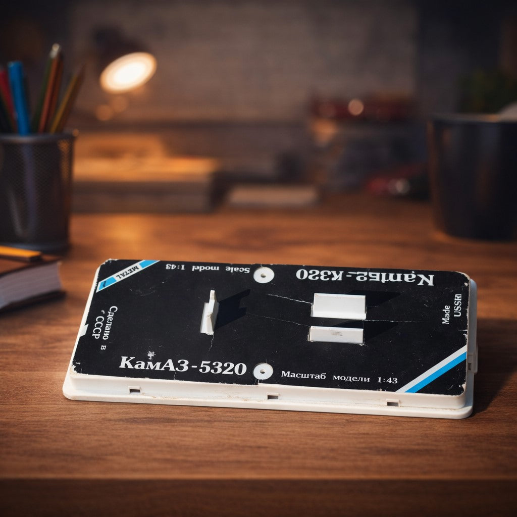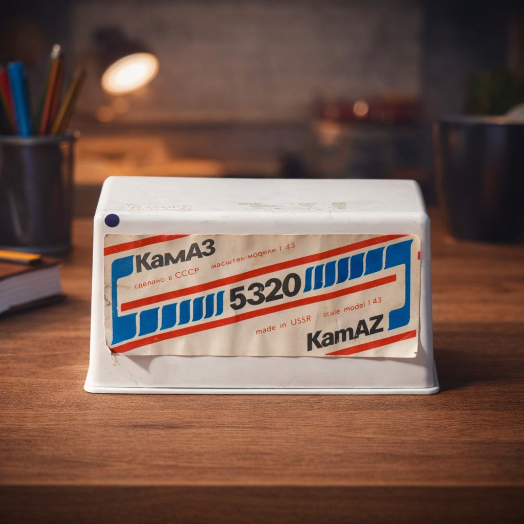 Socle : D’origine, noir et blanc, inscription « КамАЗ-5320 – Масштаб модели 1:43 »