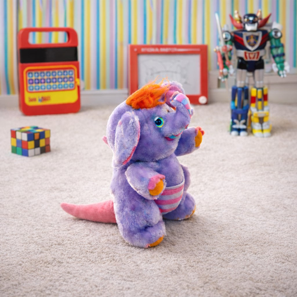 Peluche vintage représentant Elekang (aussi appelé Eleroo), personnage issu de l’univers Wuzzles.