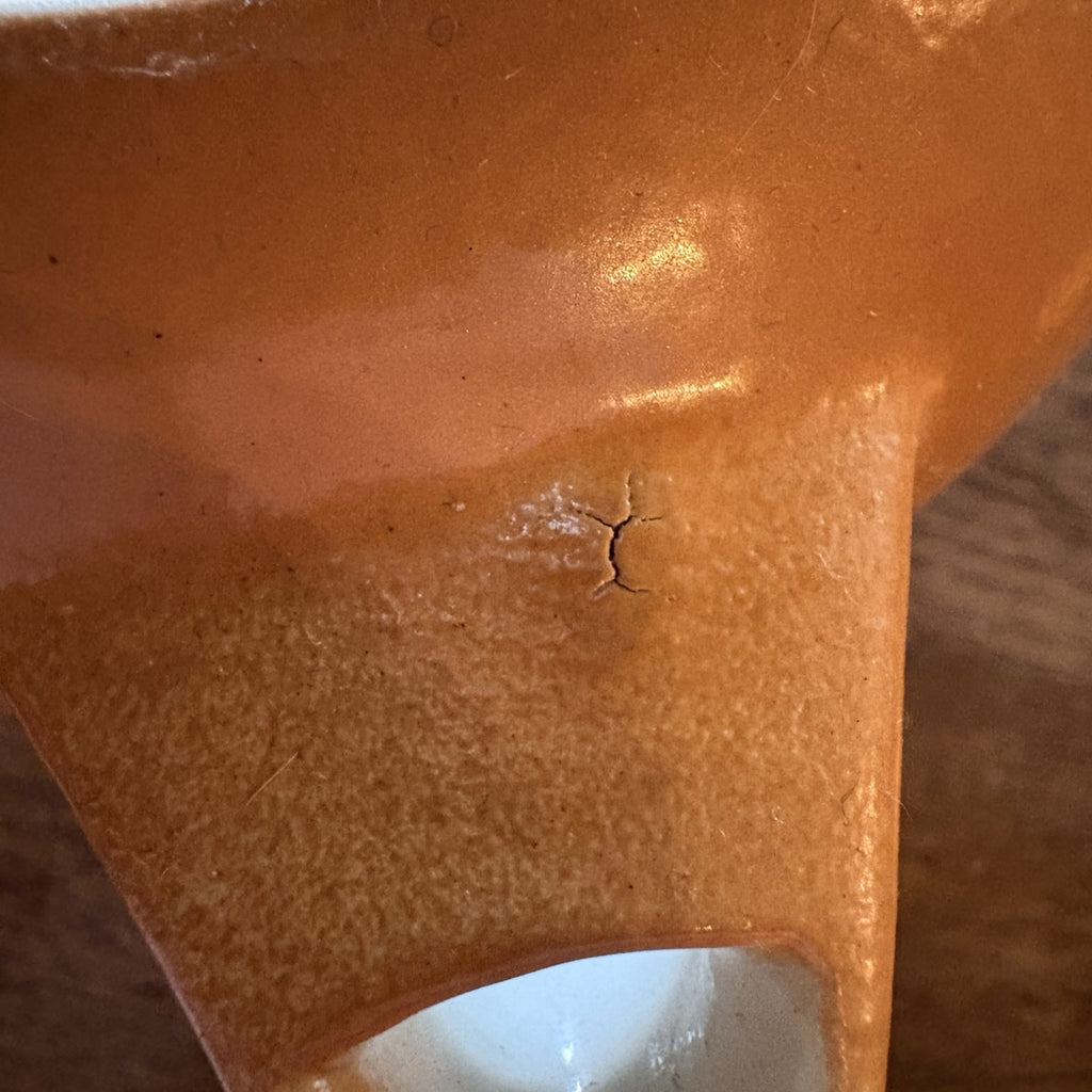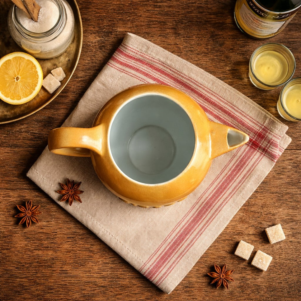 Ce pichet présente une forme élégante avec une anse généreuse et un bec verseur bien marqué. La céramique émaillée offre une belle patine, témoignage de son âge et de son utilisation passée.