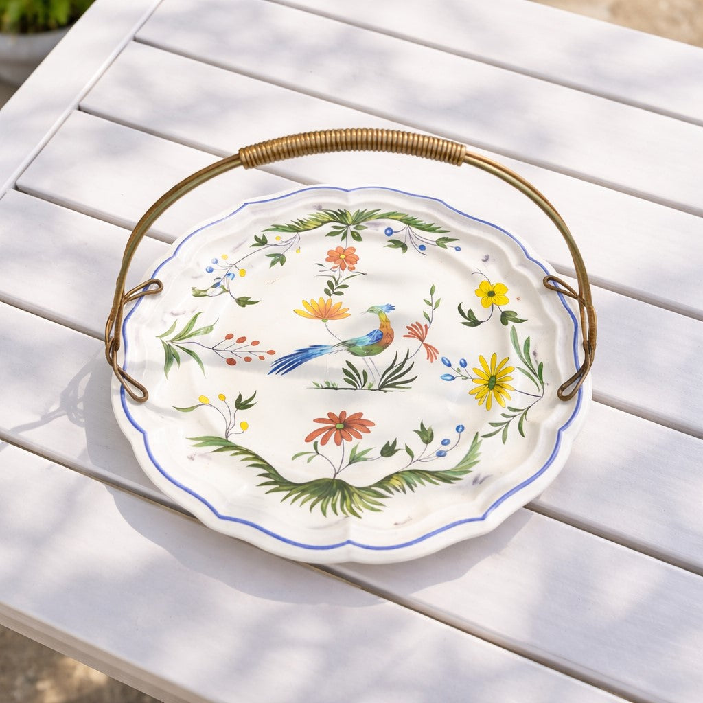 Plat de service en faïence de Gien “Oiseaux de Paradis” avec anse