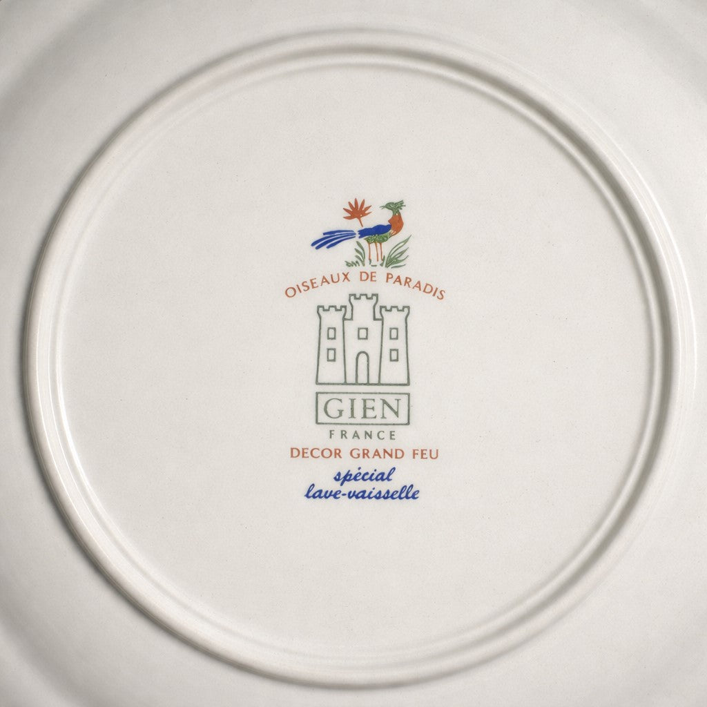 Charmant plat de service en faïence signé Gien, décoré du motif emblématique “Oiseaux de Paradis”. Ce modèle se distingue par ses couleurs vives et son décor floral délicat mettant en scène un oiseau exotique au centre. Il est agrémenté d’une anse en métal doré, typique des présentations élégantes, idéale pour le service ou comme élément décoratif.